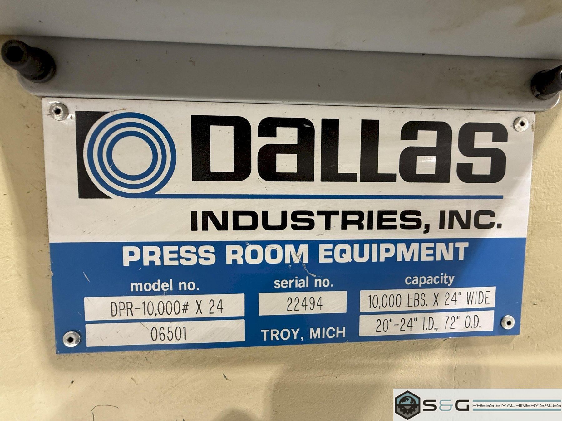 Dallas Industries Model PTR-10000x24 Serial Number 22496 Peeler, Threader and Hold Down Air operated coil hold down arm |