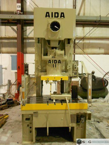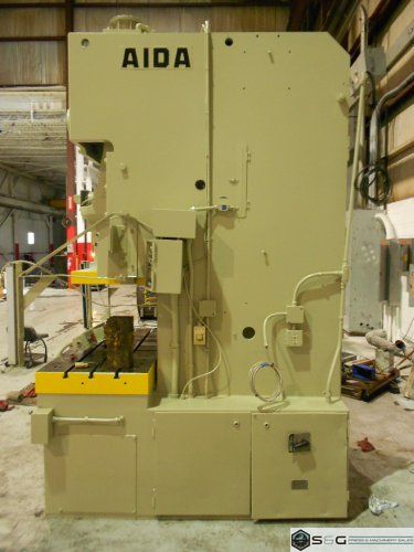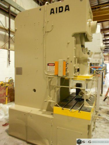 This 121-ton Aida Single Crank Gap Frame Mechanical Metal Stamping Press Can Be Seen Under Power in S&G Press Warehouse.