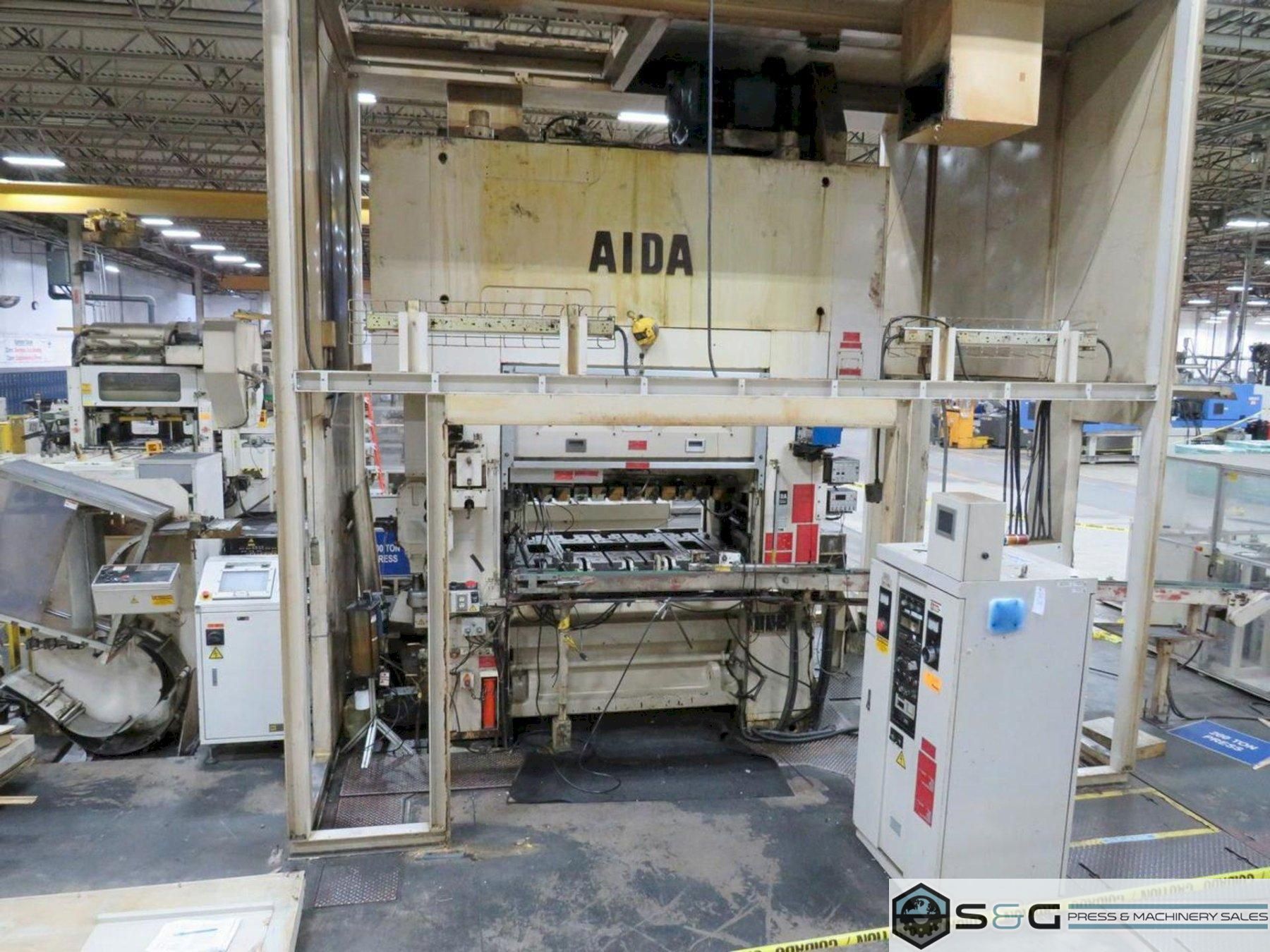 This used 200 metric ton Aida Press can be seen under power in the S&G Press Livonia Michigan Warehouse upon request!