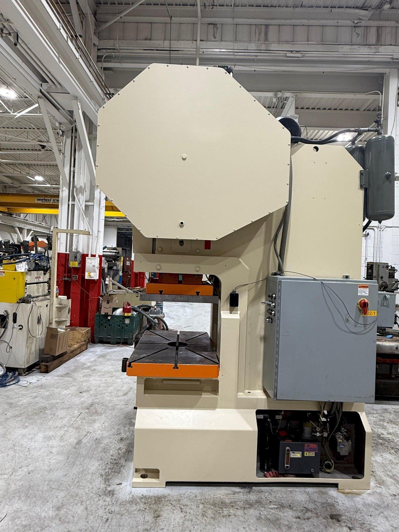 Features: Air Clutch and Brake Air Counterbalances Lubrication System T-Slotted Plate on Ram Easily Adjustable Stroke Length Wintriss WPC 2000 Press Control Vibro Dynamic Floor Pads This used Pressix Single Point Gap Frame Press can be seen underpower in the S&G Press Livonia Warehouse. Click this link for more Single Point Gap Press Options |
