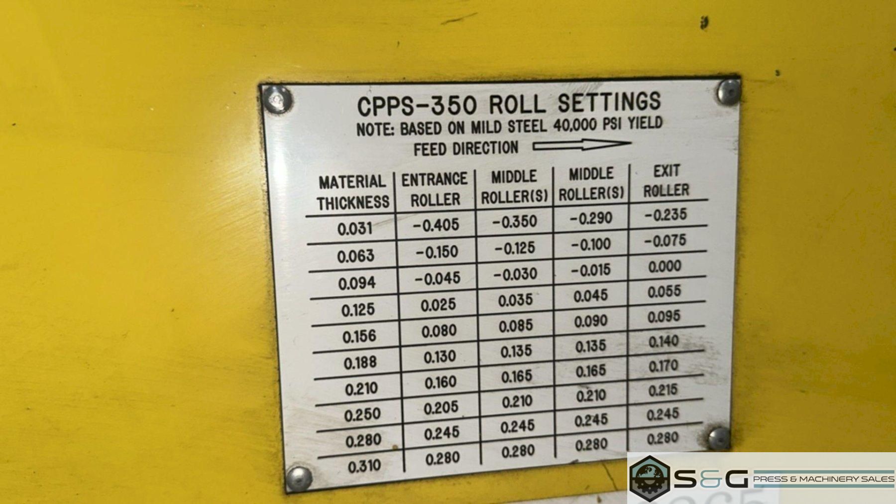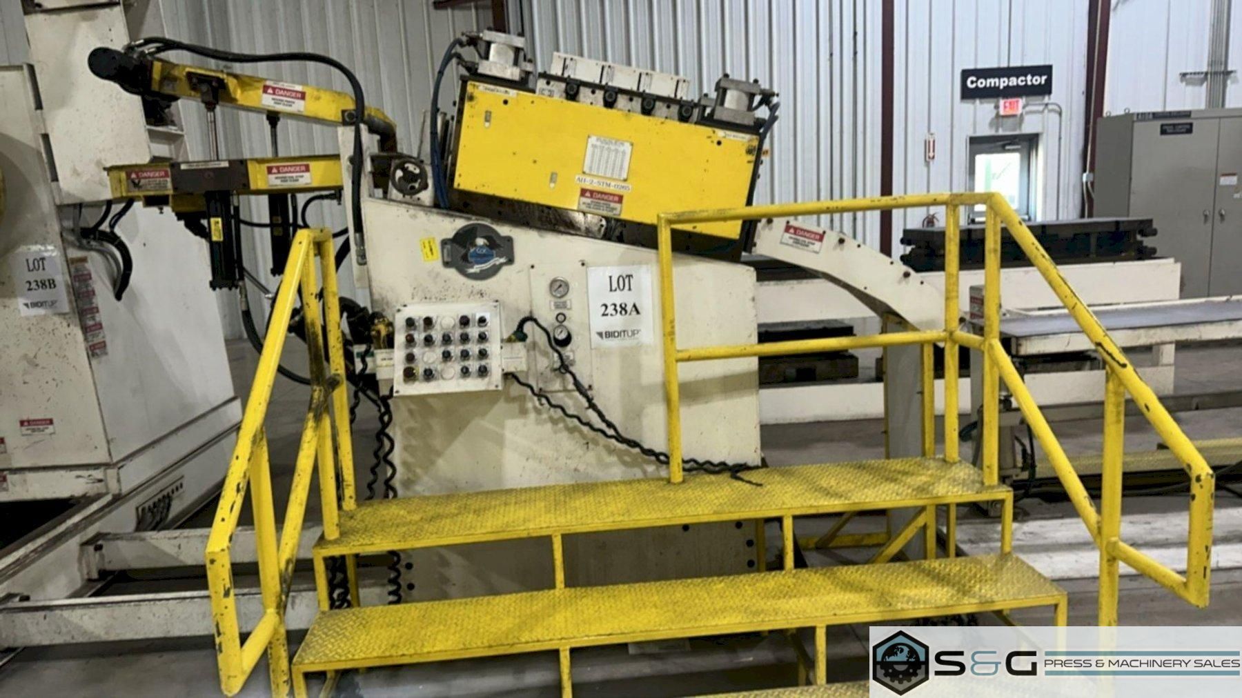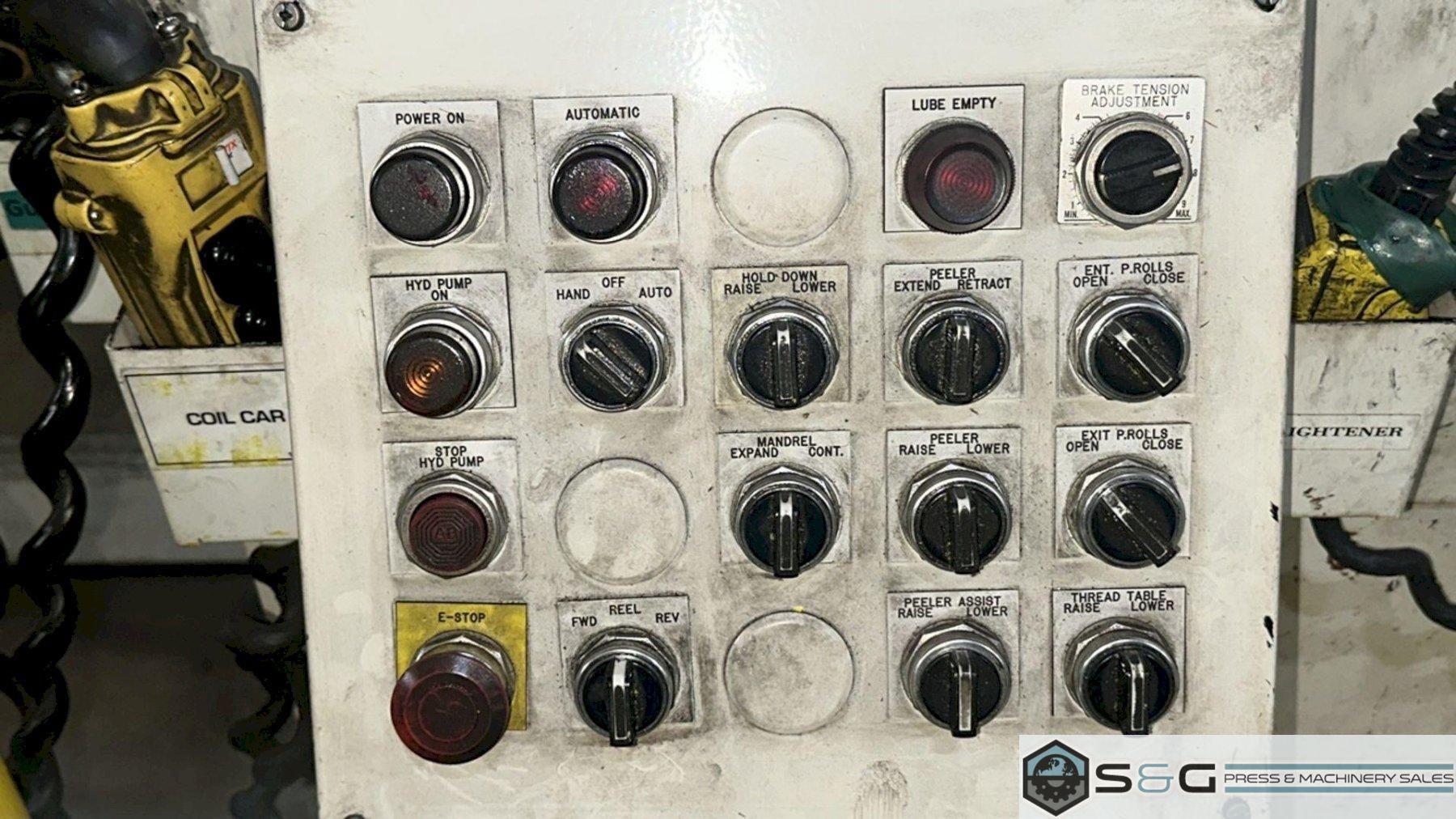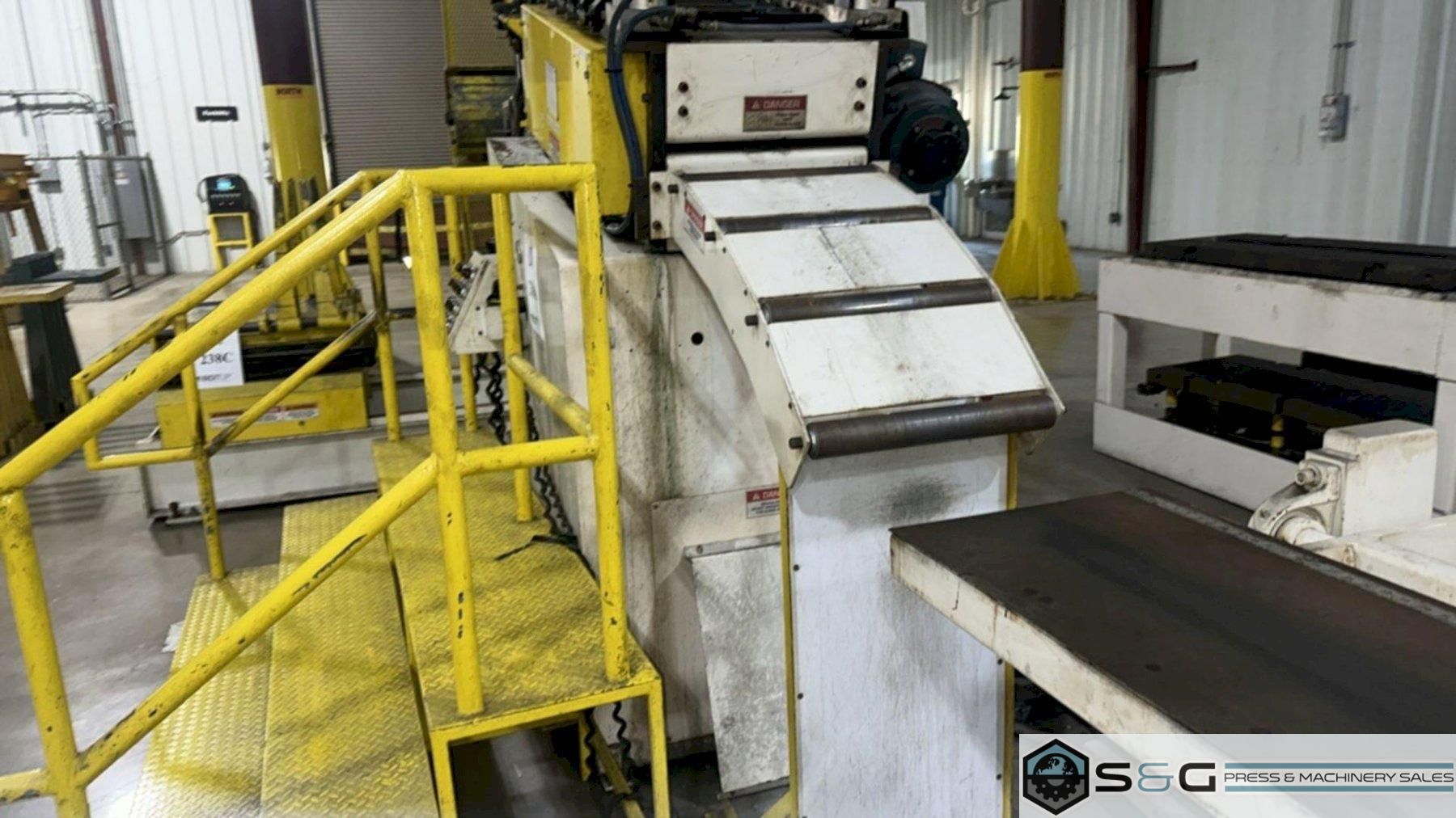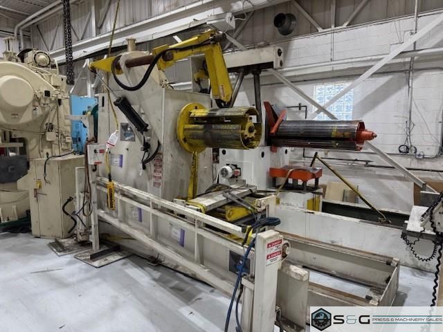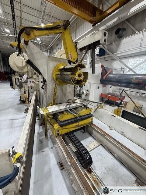 Air Raise and Lower of Threading Table Available to be seen under power at S&G Press Livonia Michigan Warehouse. Click here to see addition Coe Press Equipment options available from S&G Press. For Sale at S&G Press: Used Coe Coil Handling Equipment, New 2015, available immediately. This integrated coil handling line features a robust 15,000 lb x 24-inch Coe Pull-Off Coil Reel (Model CPR-PO-15024), complete with hydraulic expansion for efficient coil loading. It's paired with a versatile 18-inch Coe Powered Straightener (Model CPPS-350-18), designed for reliable material flattening. Ideal for metal stamping, fabrication, and general metal processing, this well-maintained 2015 Coe coil line offers a cost-effective solution. Enhance your productivity with this quality used Coe Reel and Coe Straightener combination. Contact S&G Press for complete specifications and pricing. |