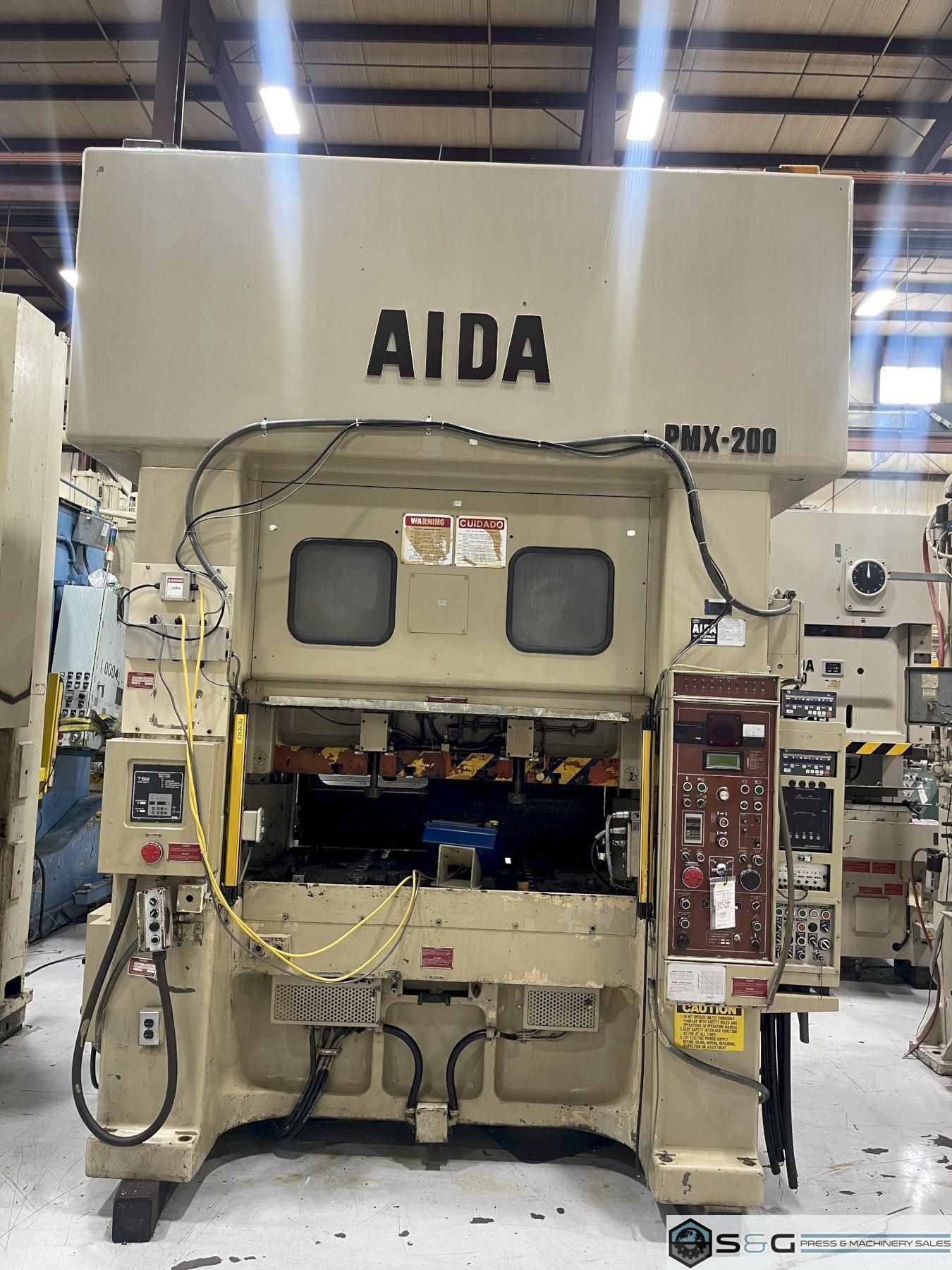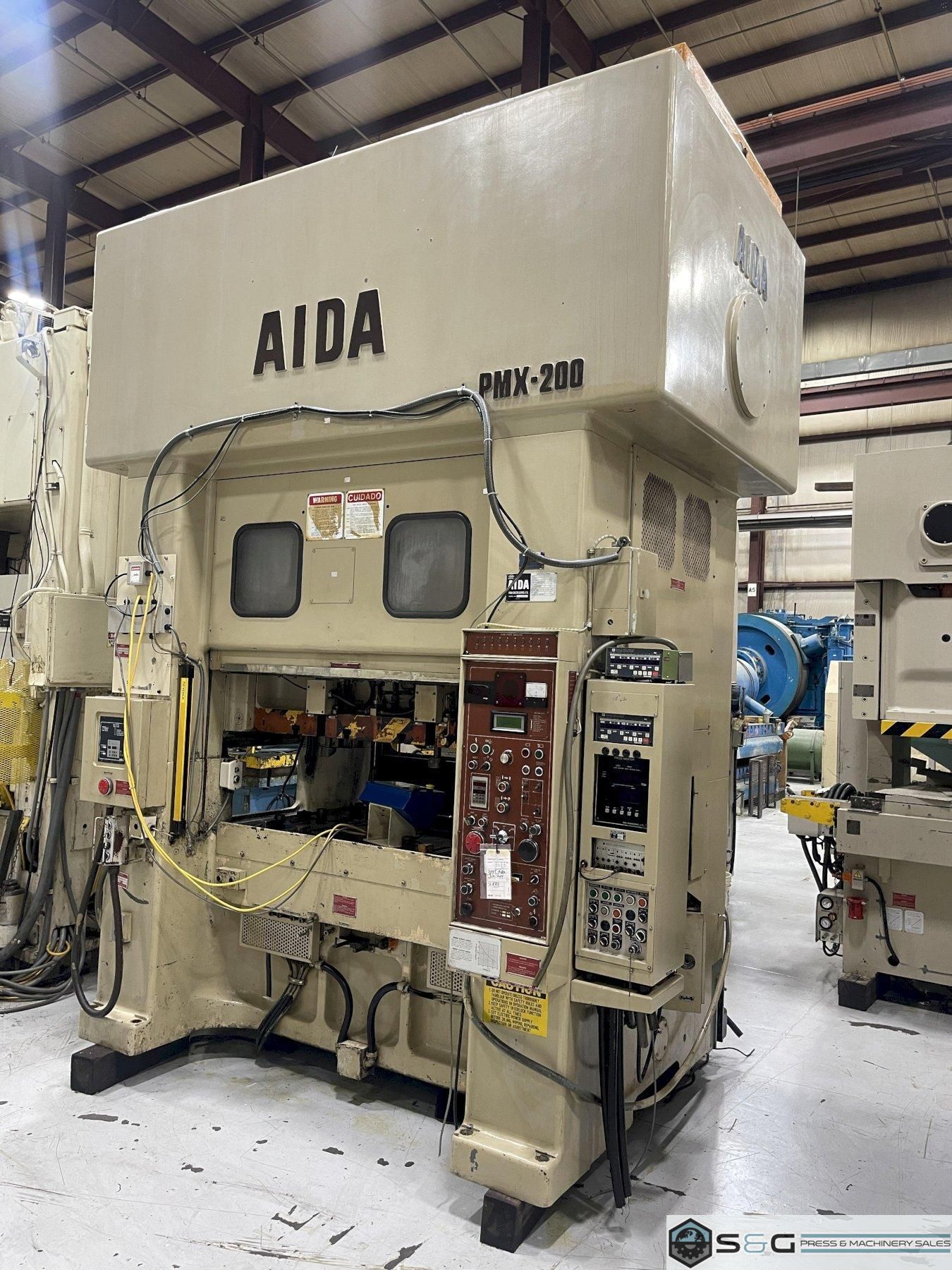 This Used 200-ton Aida PMX Press can be seen underpower in the S&G Press Livonia Michigan Warehouse.