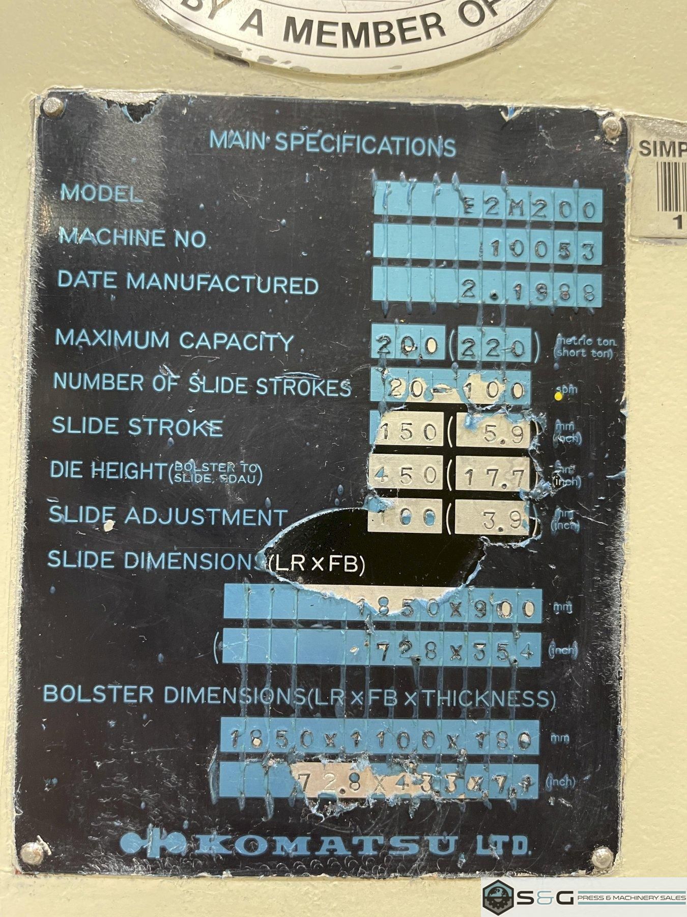 | Used Komatsu Press For Sale, Straight Side Press For Sale, 200 ton Straight Side Press, Used 200 ton Press For Sale, Komatsu Model E2M200 Stamping Press, 200 ton Komatsu Press, 200 ton Press For Sale, Komatsu Metal Stamping Press, Used Mechanical Metal Stamping Press | ||