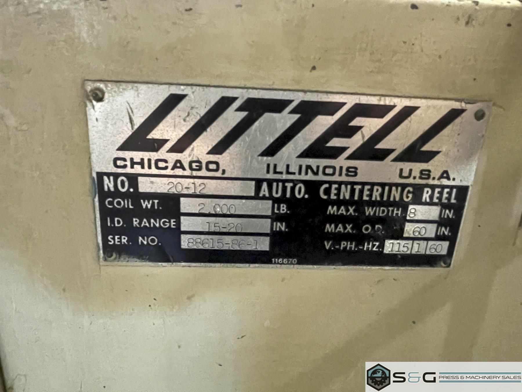 2,000 lbs. x 12" Wide Littell Coil Reel and Powered Straightener For Sale