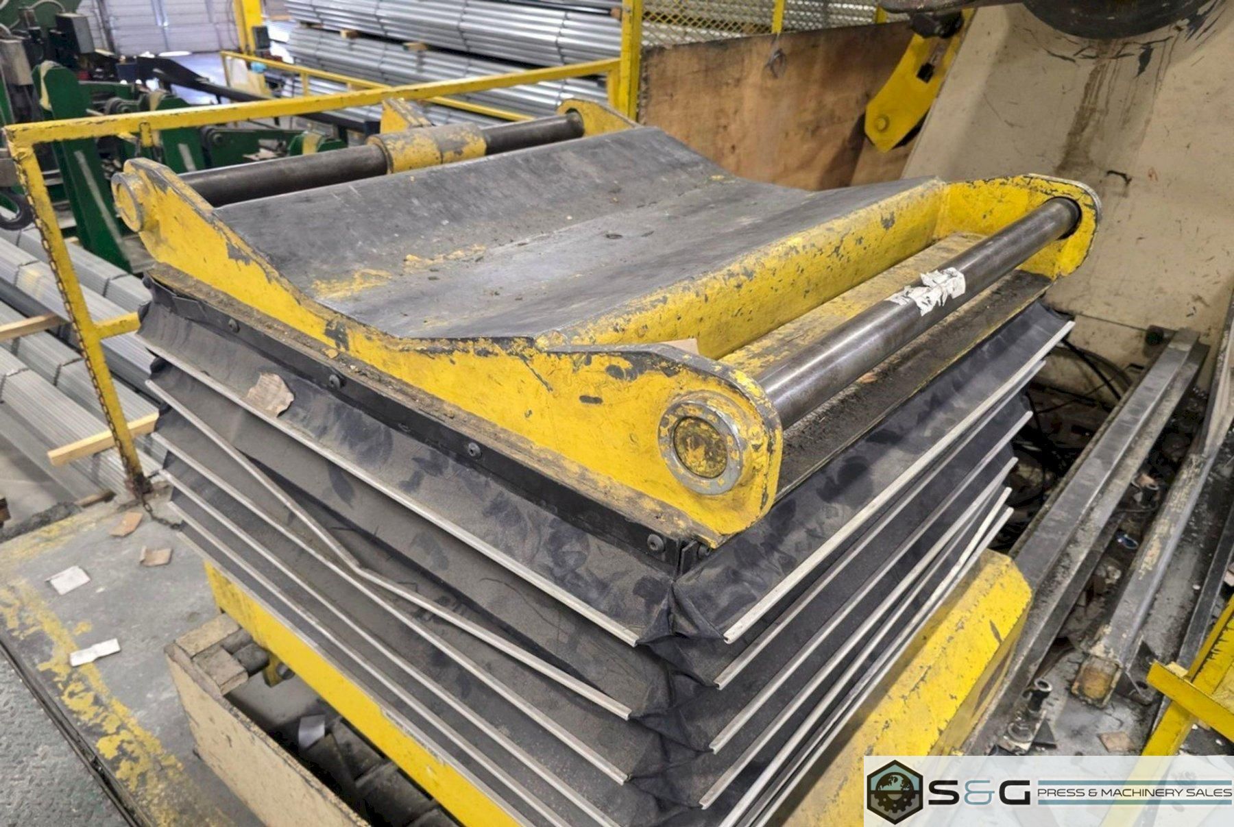 Boost your metal stamping efficiency with this robust Used Coe Press Motorized Coil Reel, Model No. CPR-20048. Designed for heavy-duty applications, this reel boasts a substantial 20,000 lbs coil weight capacity and handles coil widths up to 48 inches. With a 60-inch coil O.D. capacity and a versatile expansion range (20-24" confirmed upon request), it accommodates various material sizes. Key features include a three-leaf mandrel, hydraulic mandrel expansion with a stand-alone unit, and an air-operated coil hold-up arm with a motorized end wheel. The integrated traveling coil load car with powered lift and travel simplifies material handling. Experience precise control with motorized payout and a variable speed drive, making this Coe coil reel an ideal solution for optimizing your coil feeding operations. |