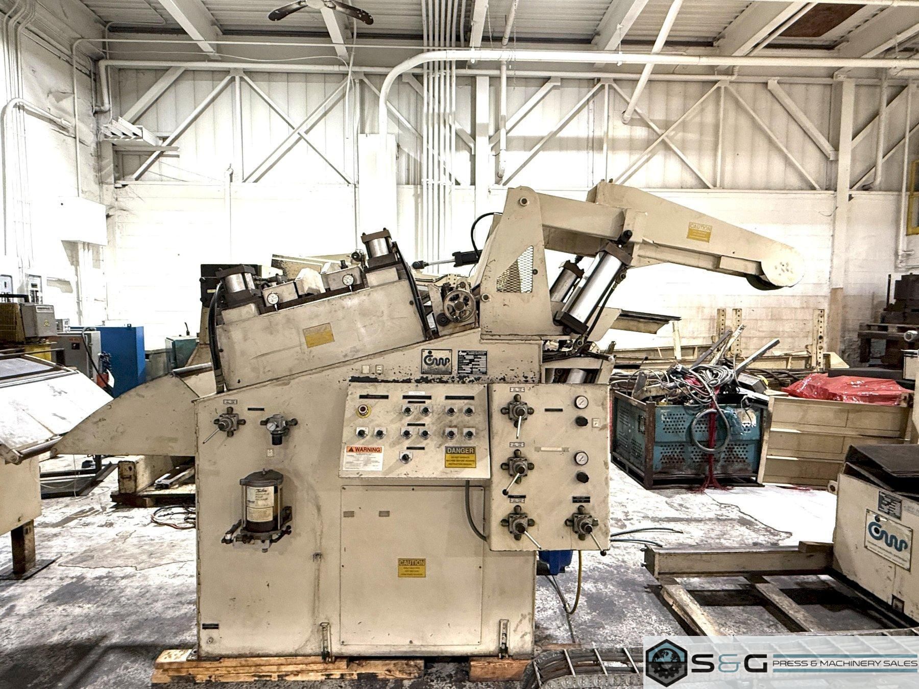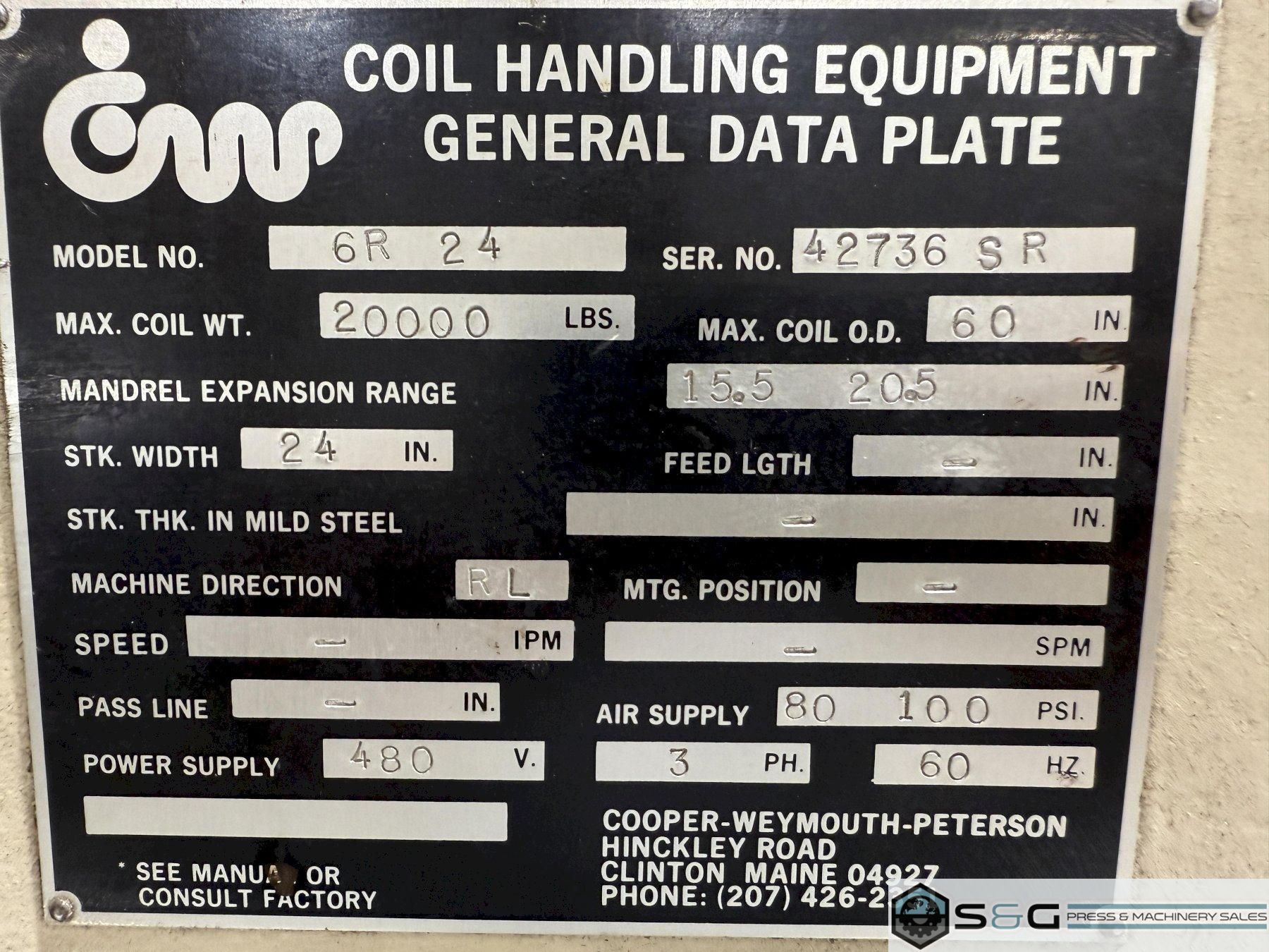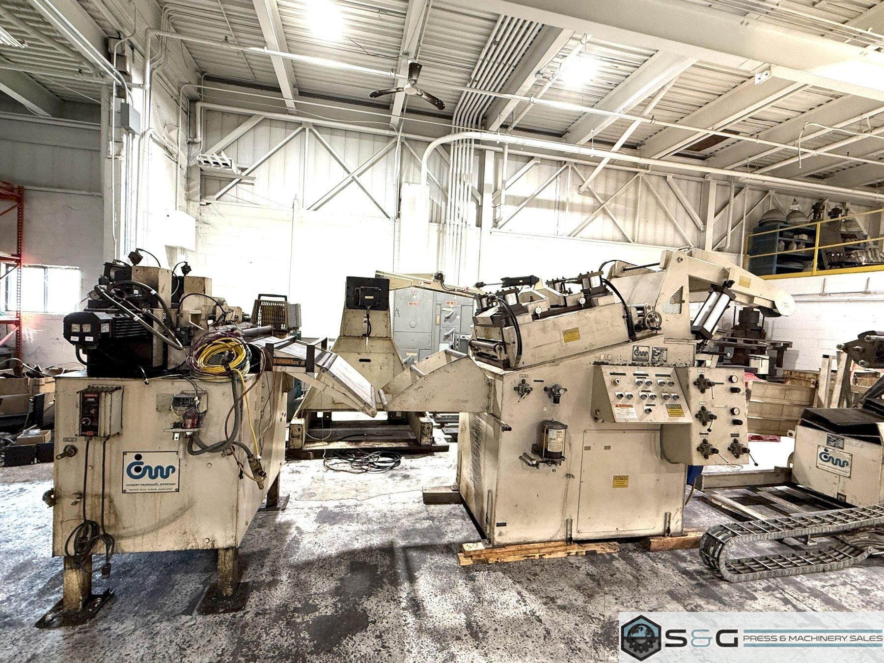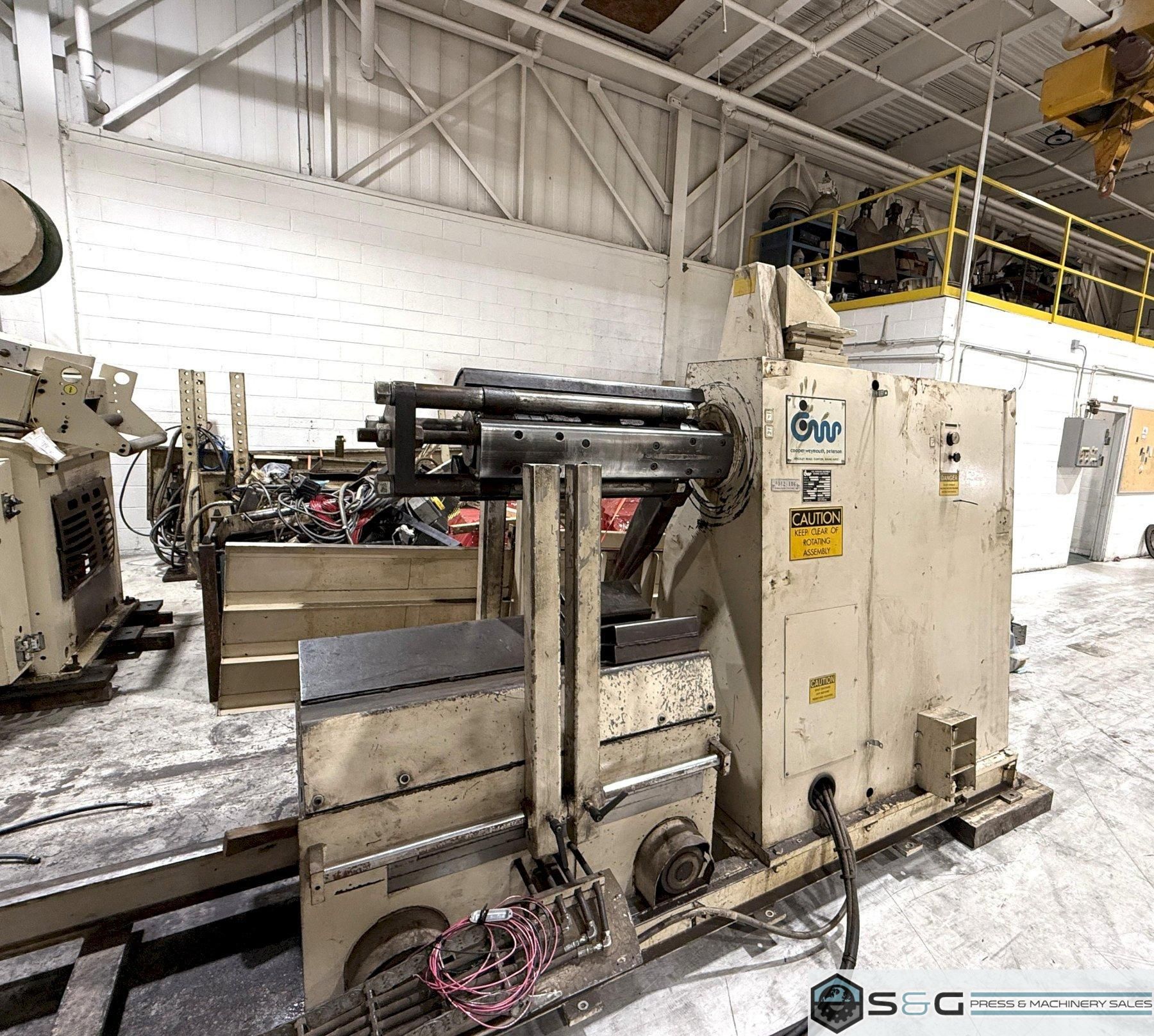 Cooper-Weymouth-Peterson Heavy Duty Coil Feed LineStandard Specifications 20,000 lbs. Coil Capacity 24" Maximum Coil Width .187" x 24" Maximum Coil Thickness 60" Maximum Coil O.D. 15.5" - 20.5" Mandrel Expansion Range Right To Left Feed Direction CWP Coil Reel Model 6R-24 with Coil Car Model 20042 CLC 24" Cooper-Weymouth-Peterson Heavy Duty Coil Handling Equipment for SaleLooking for heavy-duty coil handling equipment? S&G Press has a robust used Cooper-Weymouth-Peterson coil feed line available, perfect for demanding metal stamping operations. This 24-inch coil line boasts a 20,000 lbs coil capacity and can process material up to .187" thick. Featuring a CWP Coil Reel (Model 6R-24) with a traveling coil car, a CWP Powered Coil Straightener (Model 24D11) with eleven straightening rolls, and a CWP Coil Servo Roll Feed (Model SMX24H Heavy Duty), this system offers precision and efficiency. The servo roll feed includes 500 job storage and AC servo drive and controls for seamless integration. This Cooper-Weymouth-Peterson equipment is designed for high-volume production and can be seen under power at the S&G Press Warehouse. Upgrade your coil processing capabilities today! |