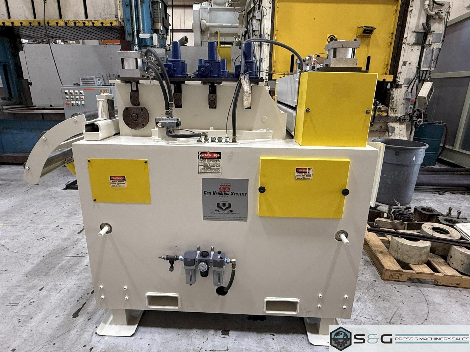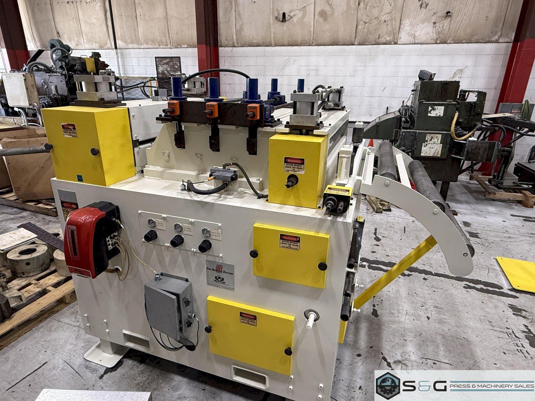 | Servo Coil Feed Line, CHS AUTOMATION, 36" Wide Feed Line, 36" wide Coil Reel, Used Coil Feed Line, Used Coil Feed Equipment For Sale, Used CHS Automation Servo Feed Line, Metal Stamping Coil Feed Line | ||