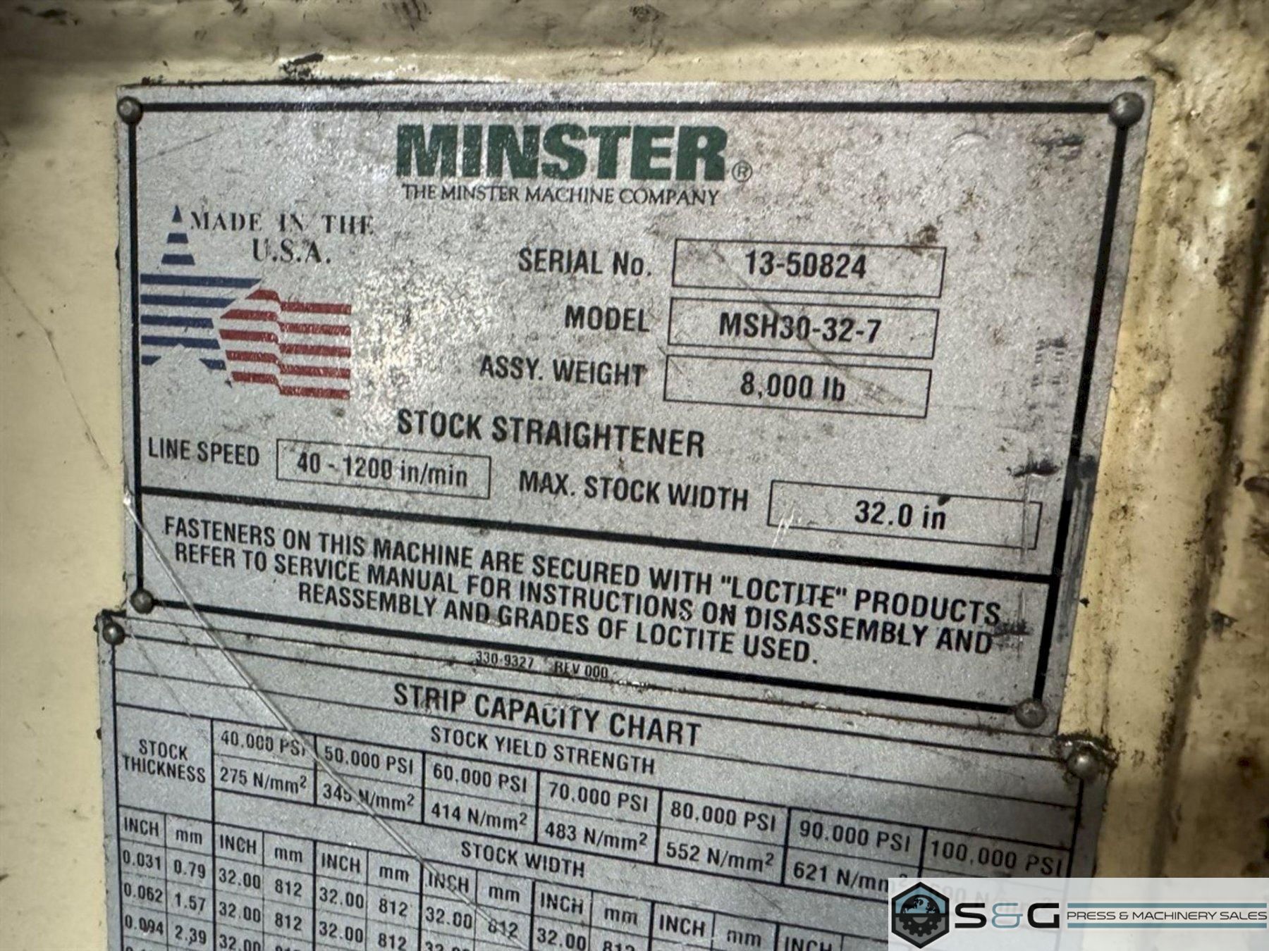 24,000 lbs. x 32" Width Minster Coil Reel and Minster Powered Straightener, Model#MRH20-38S & MSH30-32-7, Year 2007