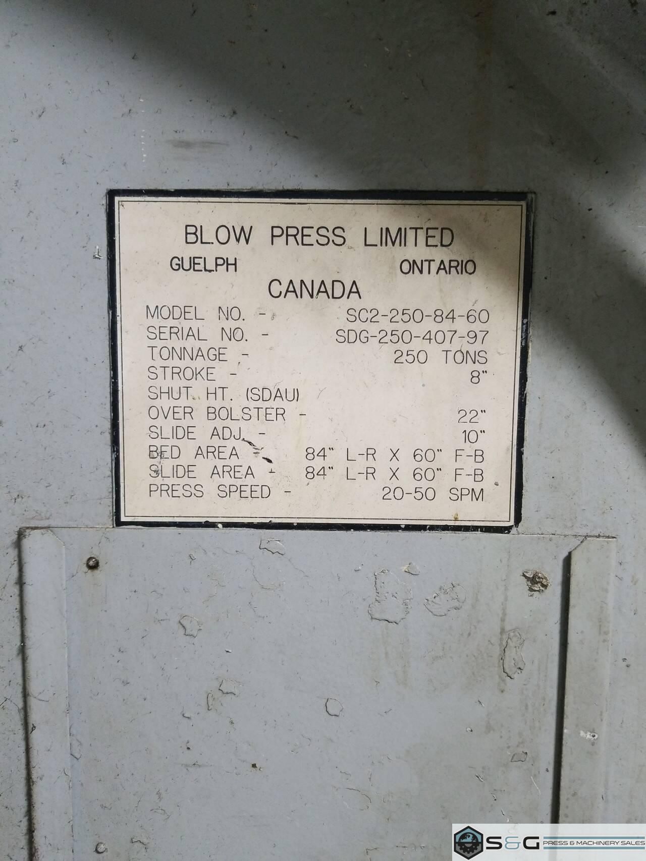 250 ton Blow SC2-250-84-60 Straight Side Mechanical Press