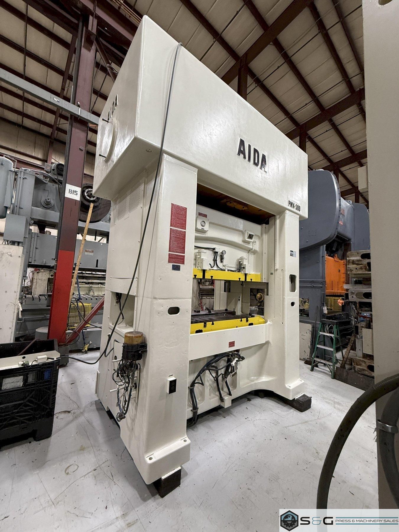 Used 300 ton Press For Sale, 300 ton Metal Stamping Press, 300 ton Straight Side Press, Used Aida Press For Sale, Aida Mechanical Stamping Press For Sale, 300-ton Aida PMX Stamping Press