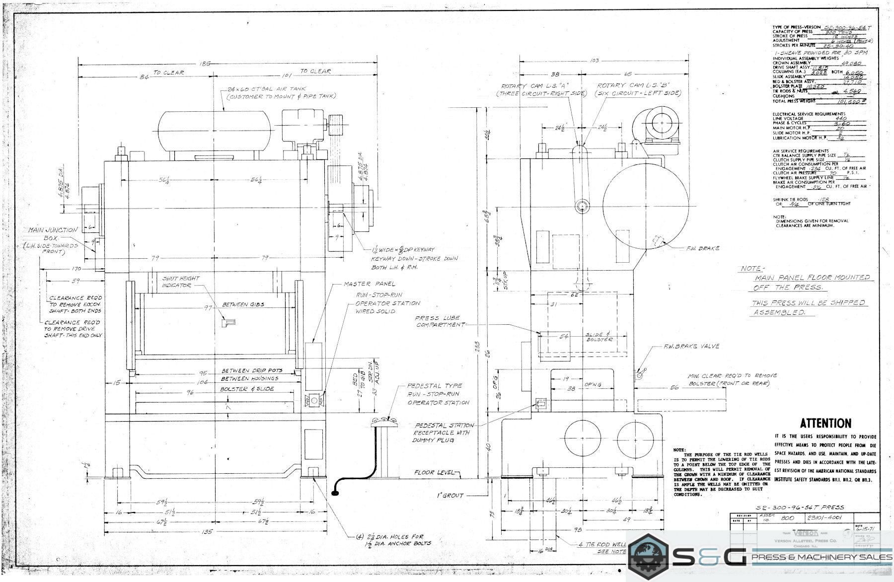 | 300 ton Verson Press S2-300-96-54t General Assembly Drawing | Download | |