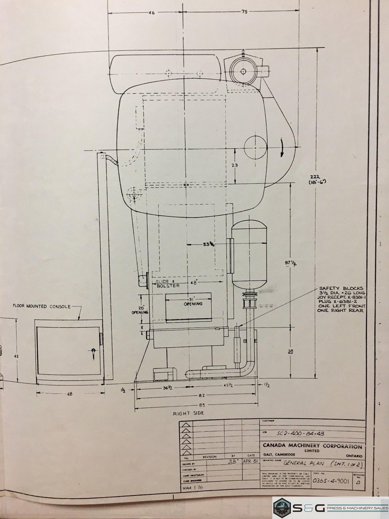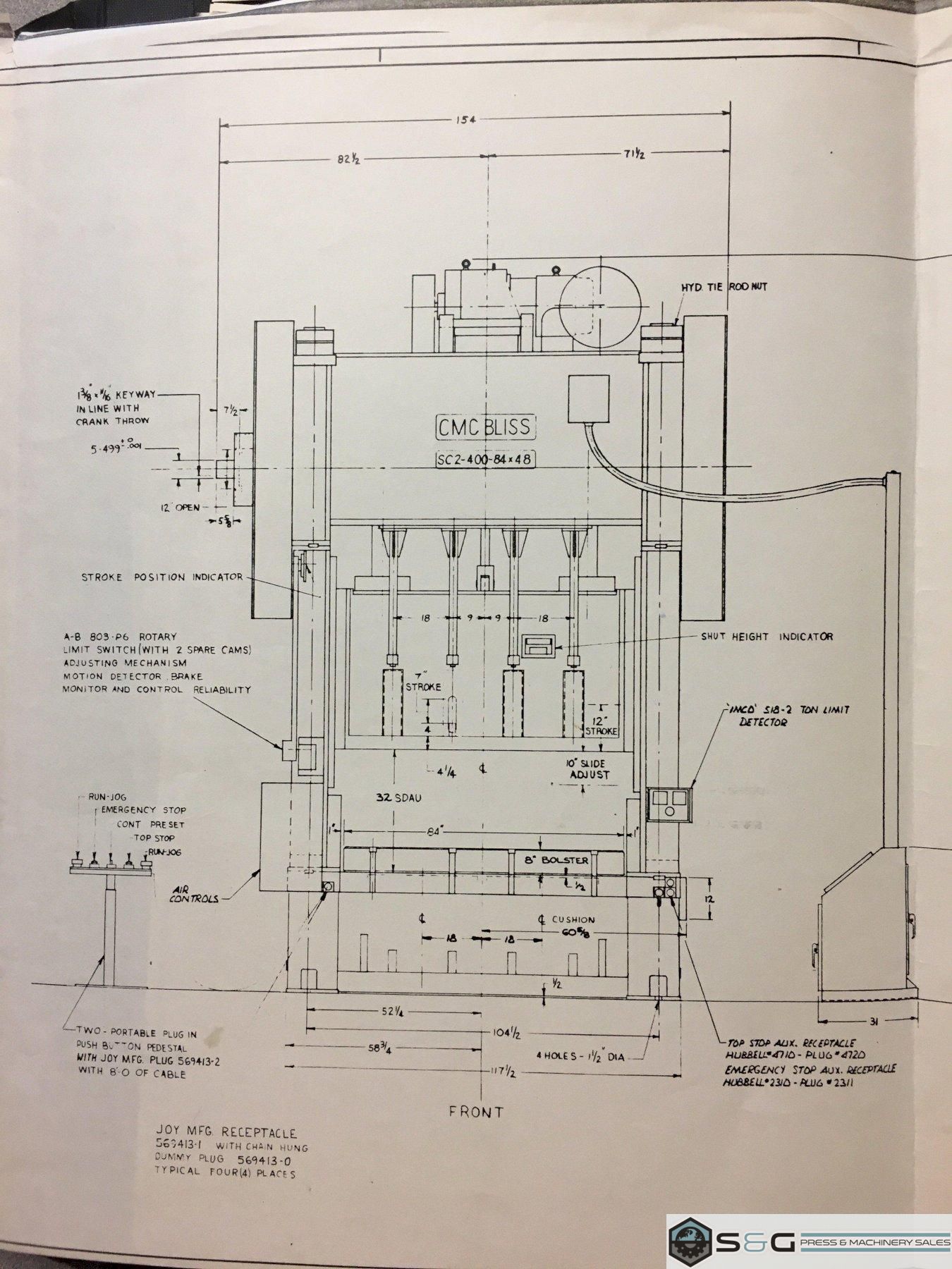 400 Ton Bliss SC2-400-84-48 Straight Side Mechanical Metal Stamping Press