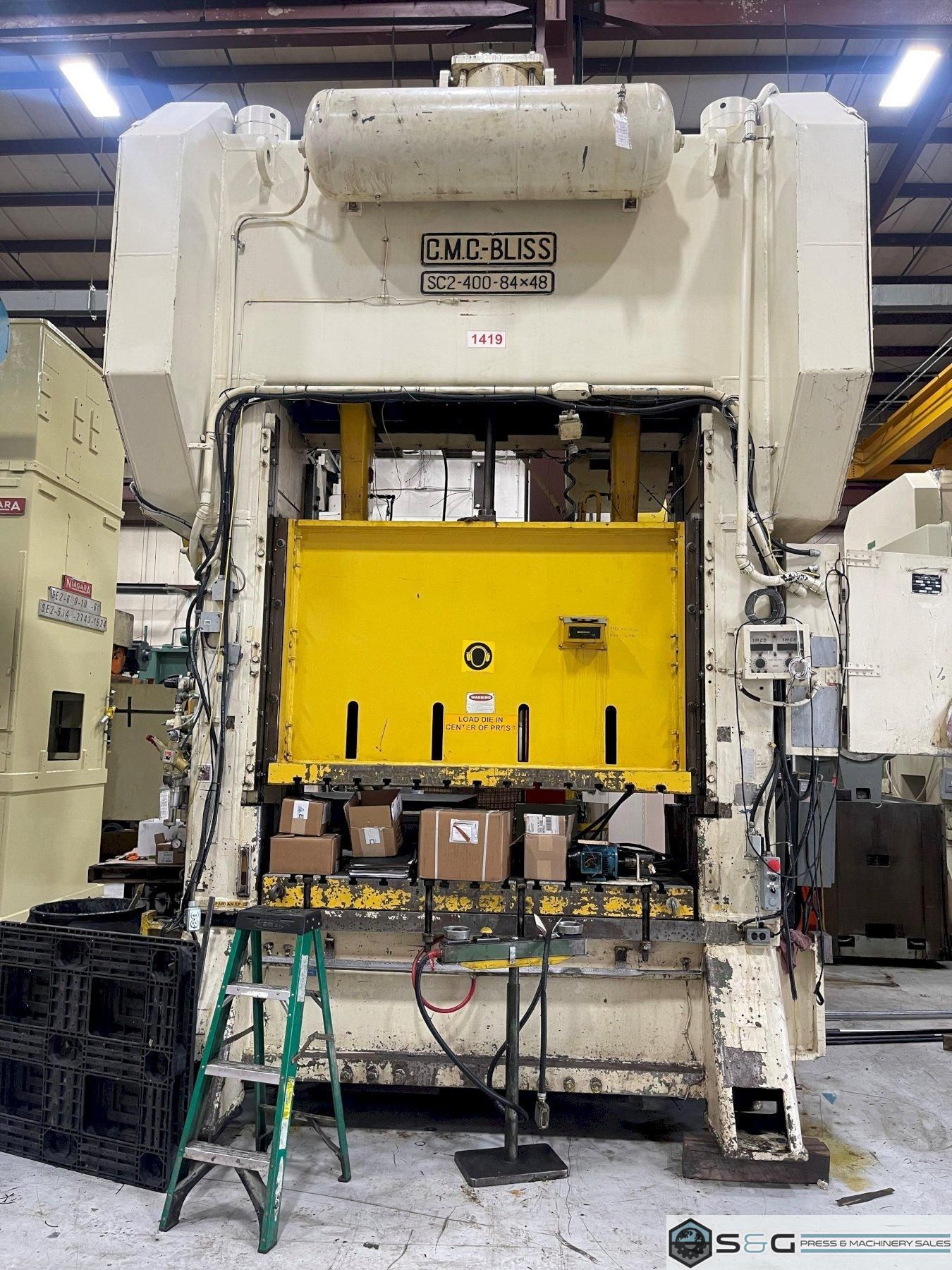 This Used 400-ton Bliss Press can be seen under power in the S&G Press Livonia Michigan Warehouse!