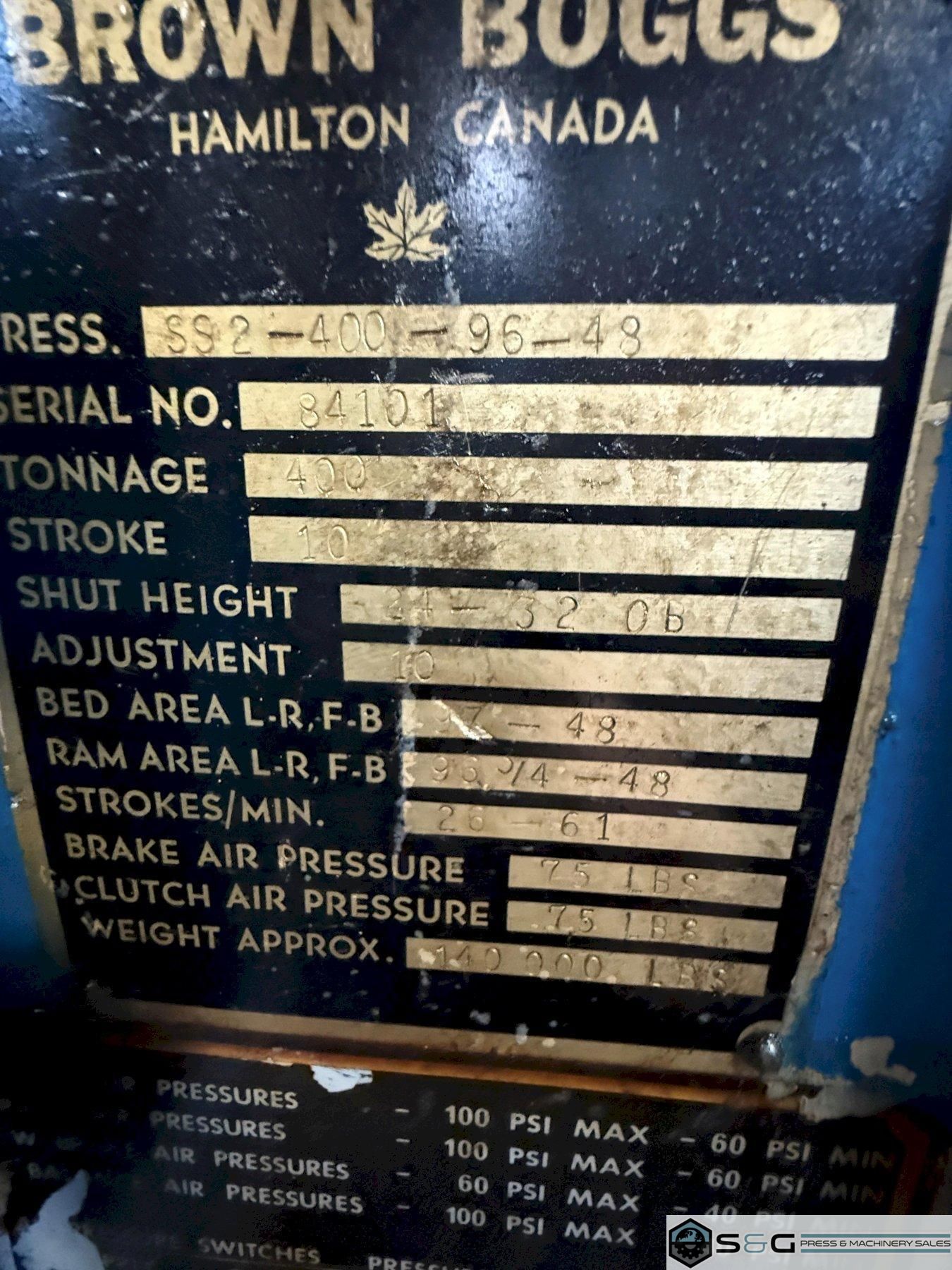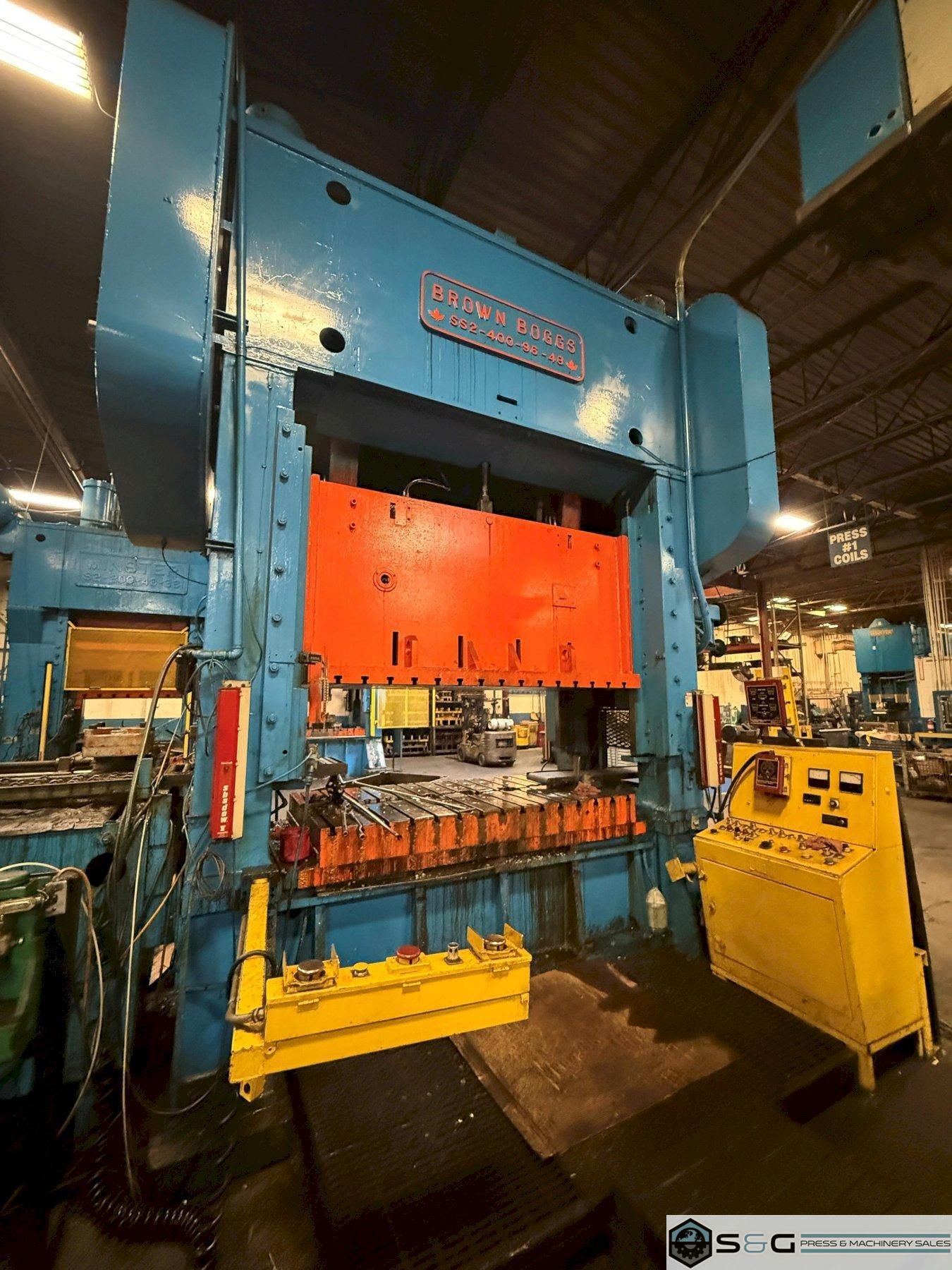| Brown Boggs Press, 400 ton Mechanical Press, 400 ton Straight Side Press For Sale, 400 ton Press For Sale, 400-ton Metal Stamping Press, Used 400 ton Stamping Press For Sale, Used 400-ton Straight Side Press For Sale | ||