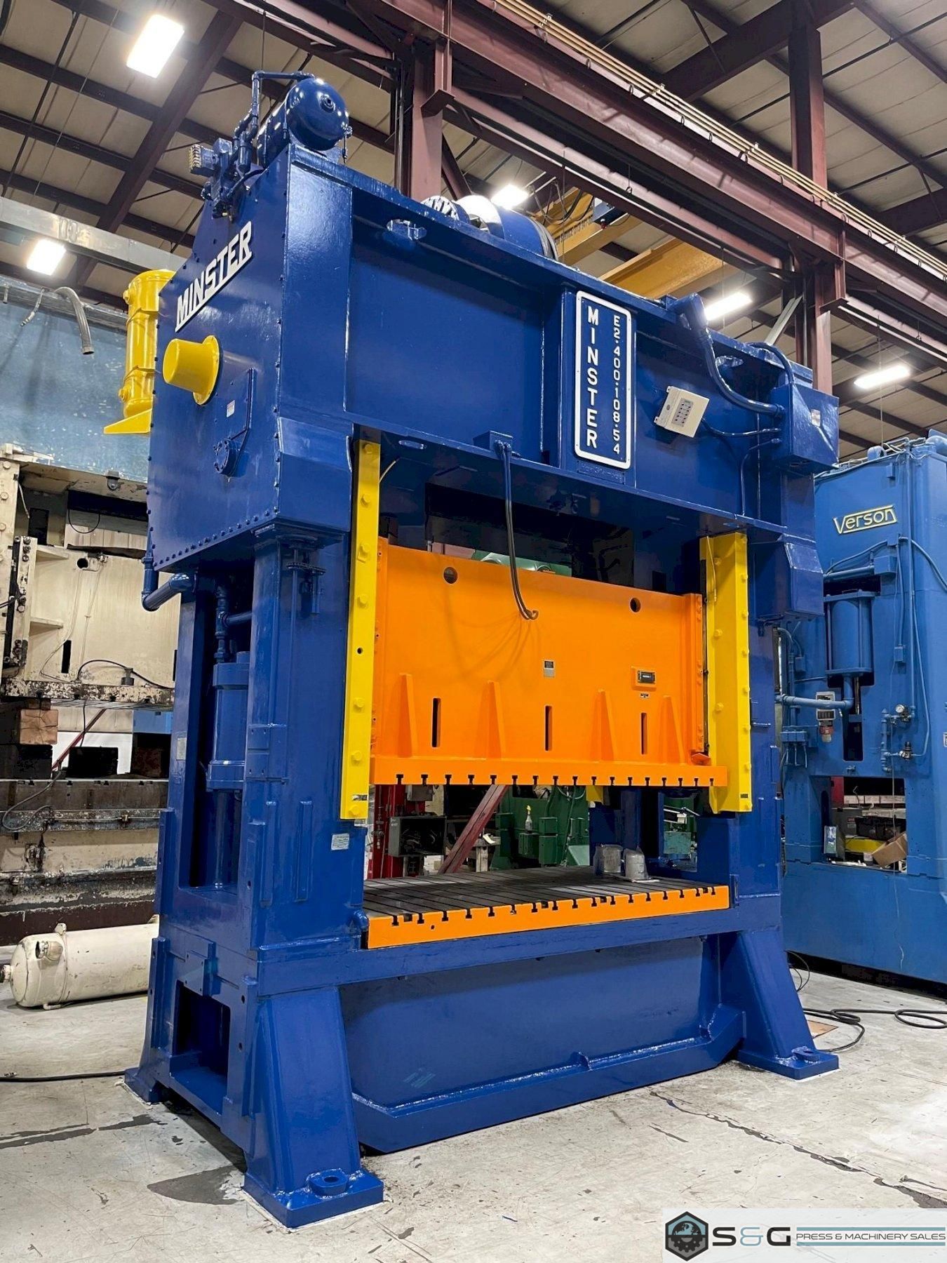 MINSTER, 400 ton Minster E2-400-108-54 Hevi-Stamper Straight Side Press, straight side press, 400 ton Press, 400 ton Mechanical Press, Minster Hevistamper, Progressive Die Press, Rebuilt