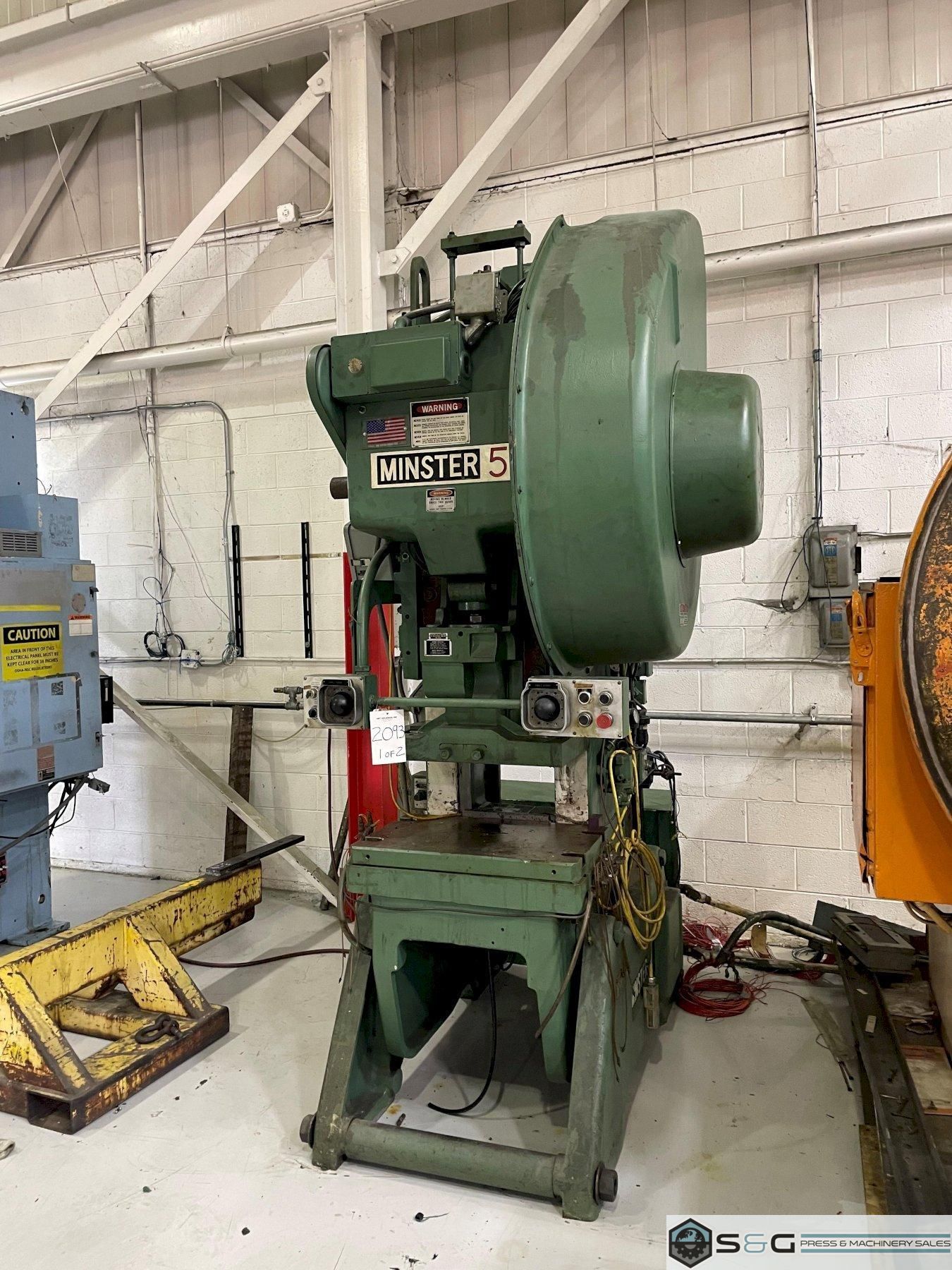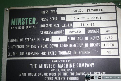 This Used 45-ton Minster Gap Frame Metal Stamping Press an be seen under power in our Livonia Michigan Warehouse!