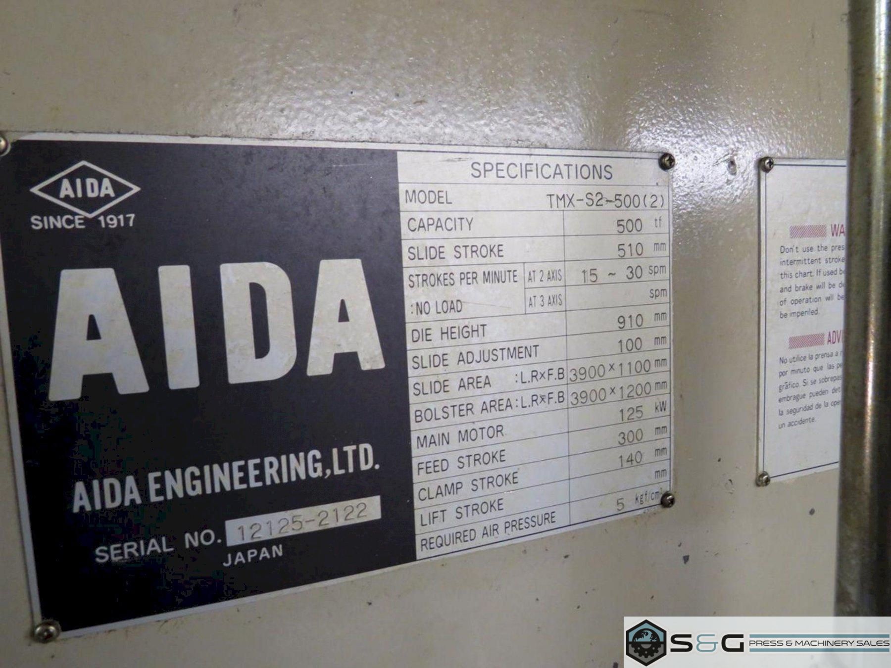 Aida Press, Straight Side Double Crank Press, Used Mechanical Press, 500 ton Mechanical Press, 500 ton Aida Press For Sale, Used Stamping Press For Sale, Mechanical Press, 500 ton Press For Sale, 500 ton Straight Side Press, Metal Stamping Press For Sale, 500 ton Press, Used Aida Press For Sale, Aida TMX-S2-500 Press, Used Mechanical Metal Stamping Press, Metal Stamping Progressive Die Press, Straight Side Transfer Press For Sale