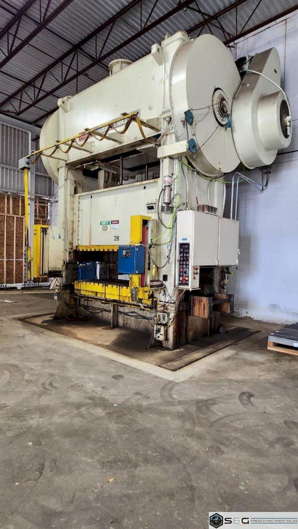 Standard Specifications Used Niagara Straight Side Press for Sale: 500-Ton Progressive Die StampingSearching for a reconditioned mechanical press for your high-volume stamping needs? This used 500-ton Niagara progressive die press (Model SC2-500-108-48) is the ideal solution. Engineered for precision and power, this straight side press offers a massive 500-ton capacity and a large 108" x 48" bed area, perfect for complex progressive die stamping. This reconditioned press features a 12" stroke, 40" shut height, and a variable speed of 35-70 SPM. Key components include an air clutch and brake, air counterbalances, and a recirculating lube system for reliable operation. Safety is paramount with 36" shadow light curtains and hydraulic overloads. Equipped with a 100 HP motor, a T-slotted ram and bolster, and Vibro Dynamic isolation pads, this floor-standing press is ready to integrate into any metal stamping or metal forming production line. Upgrade your capabilities with this dependable Niagara press, available now from S&G Press. For more information and to get a quote on this used Niagara press, contact us today! |
