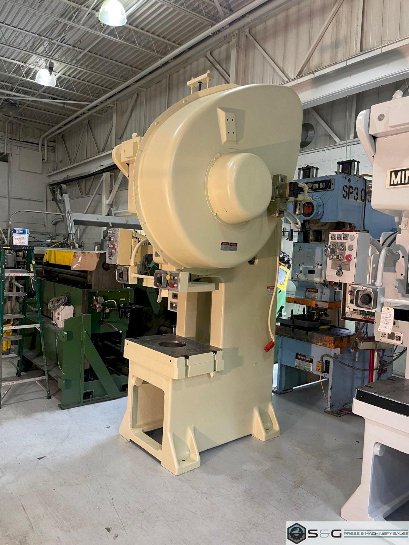 The Minster #6SS refers to a specific model of an open-back inclinable (OBI) mechanical press.2 The "6SS" often indicates a "Super Stock" or "Straight Side" variation. The "60 ton" denotes its maximum capacity, showing the force it can apply to materials.3 The key "flywheel" component defines how it operates.