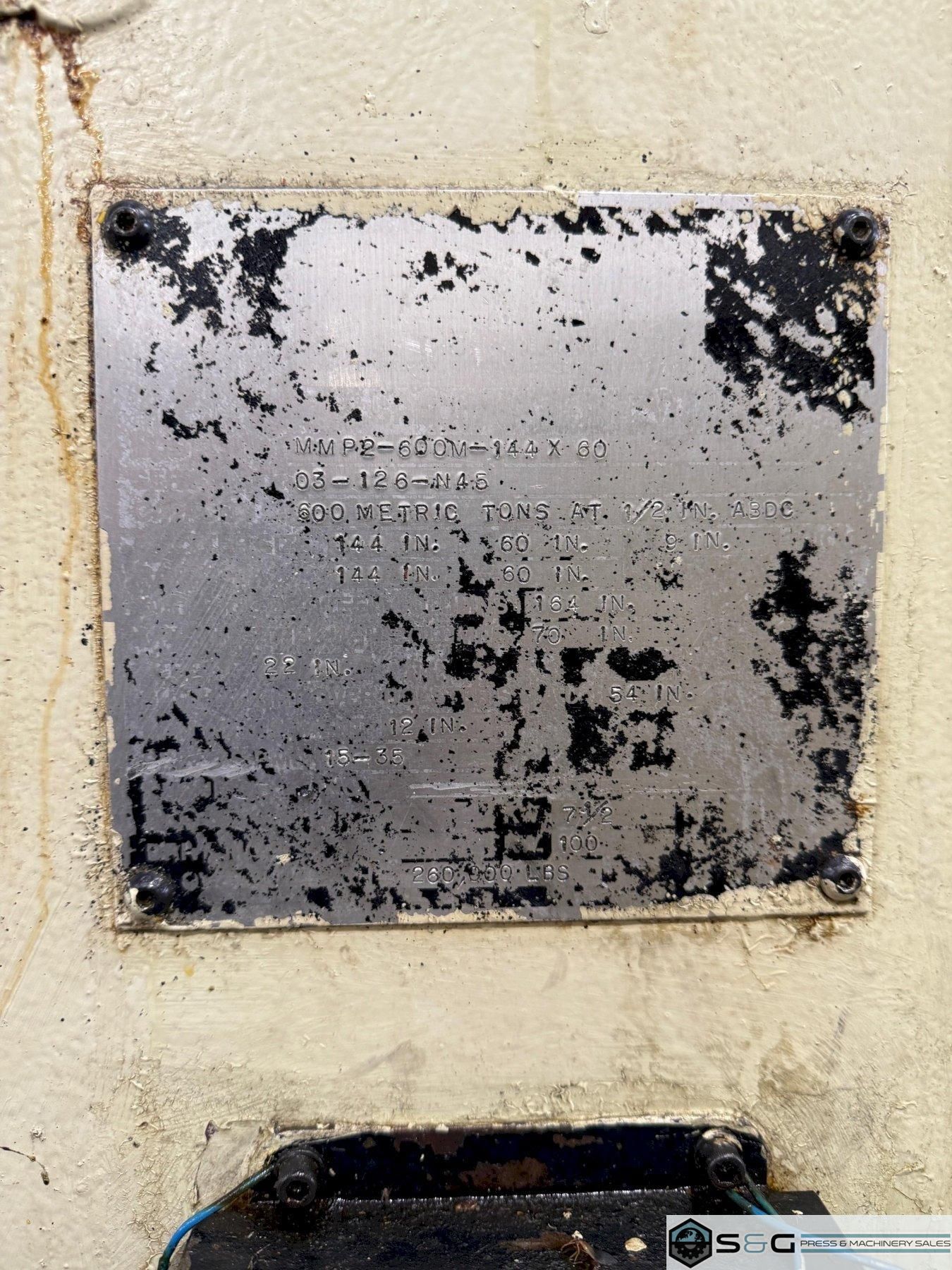 600 ton PTC Transfer / Progressive Die Press Model MMP2-600M Straight Side Mechanical Press For Sale, Year 2003