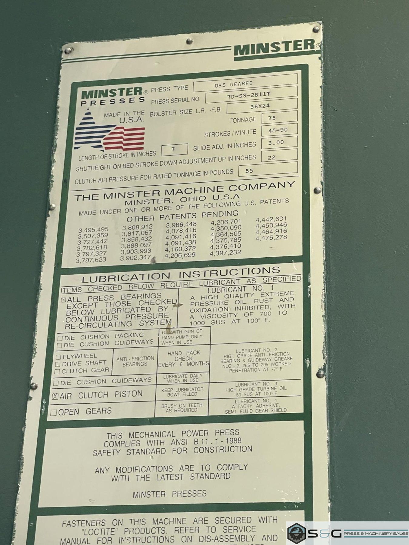 | MINSTER, Gap Press, OBS Press, 75 ton Press, Minster Press For Sale, Used Minster Press, Rebuilt Press For Sale, Mechanical Press Rebuilder, Rebuilt 75-ton Minster Press, 75-ton Mechanical Gap Press For Sale | ||