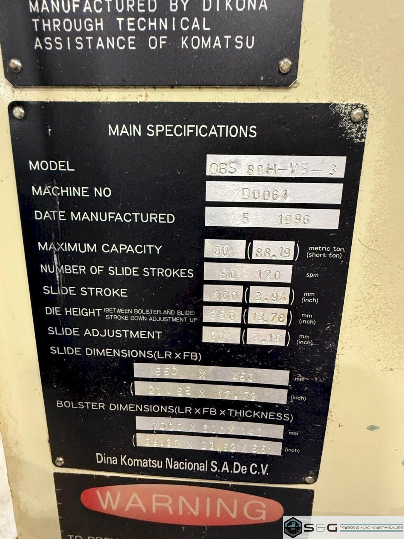 | 80-ton Press For Sale, 80-ton Komatsu OBS Press, Used Komatsu Press For Sale, Komatsu Metal Stamping Press, Komatsu Gap Frame Press For Sale, Used Komatsu Mechanical Metal Stamping press | ||
