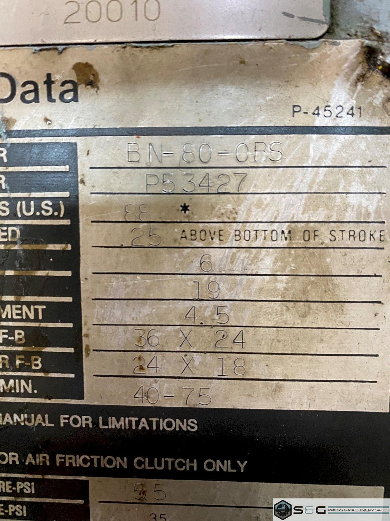 80 ton Niagara Single Crank Gap Mechanical Metal Stamping Press For Sale, Model #BN-80 Bison, Year 1990, Rebuilt 2023